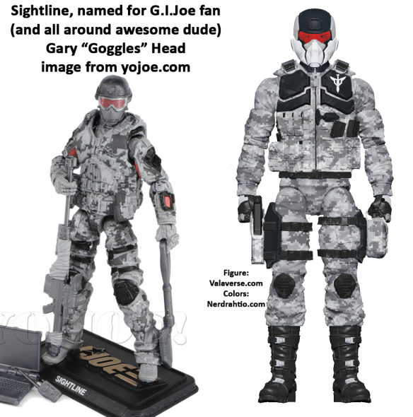 I still remember the message from Gary Godsoe, from WOJM, letting me know of Gary Head’s passing. The community honestly hasn’t been the same sense. With G.I.Joe back, I’d love to see Sightline again, but I’m not sure we will, the folks who knew of Gary have moved on, and DePriest and Weber seemed to have had to convince legal to let them get away with naming a new figure after a real person, and conceded making his last name Goggles on the file card. Given Gary’s love of former Joe designers Boss Fight’s Kickstarter, and the more modern to near future , yet grounded style of Action Force, that more matched Pursuit of Cobra- through the 50th which Sightline was a part of, I decided awhile back that I had to create an Action Force version of Gary.