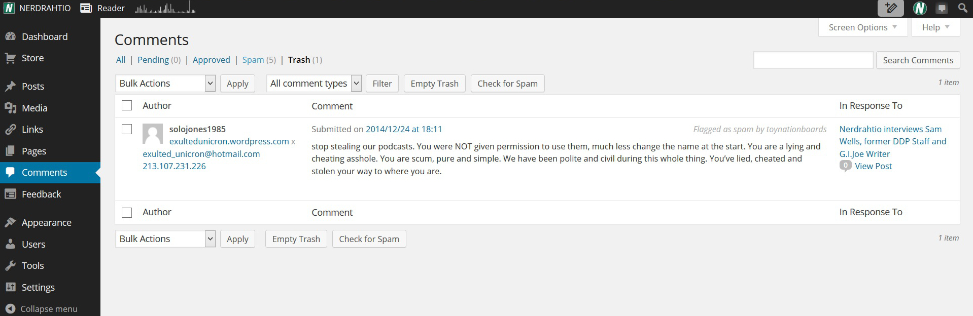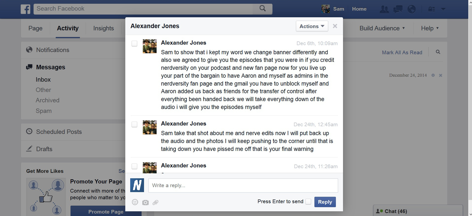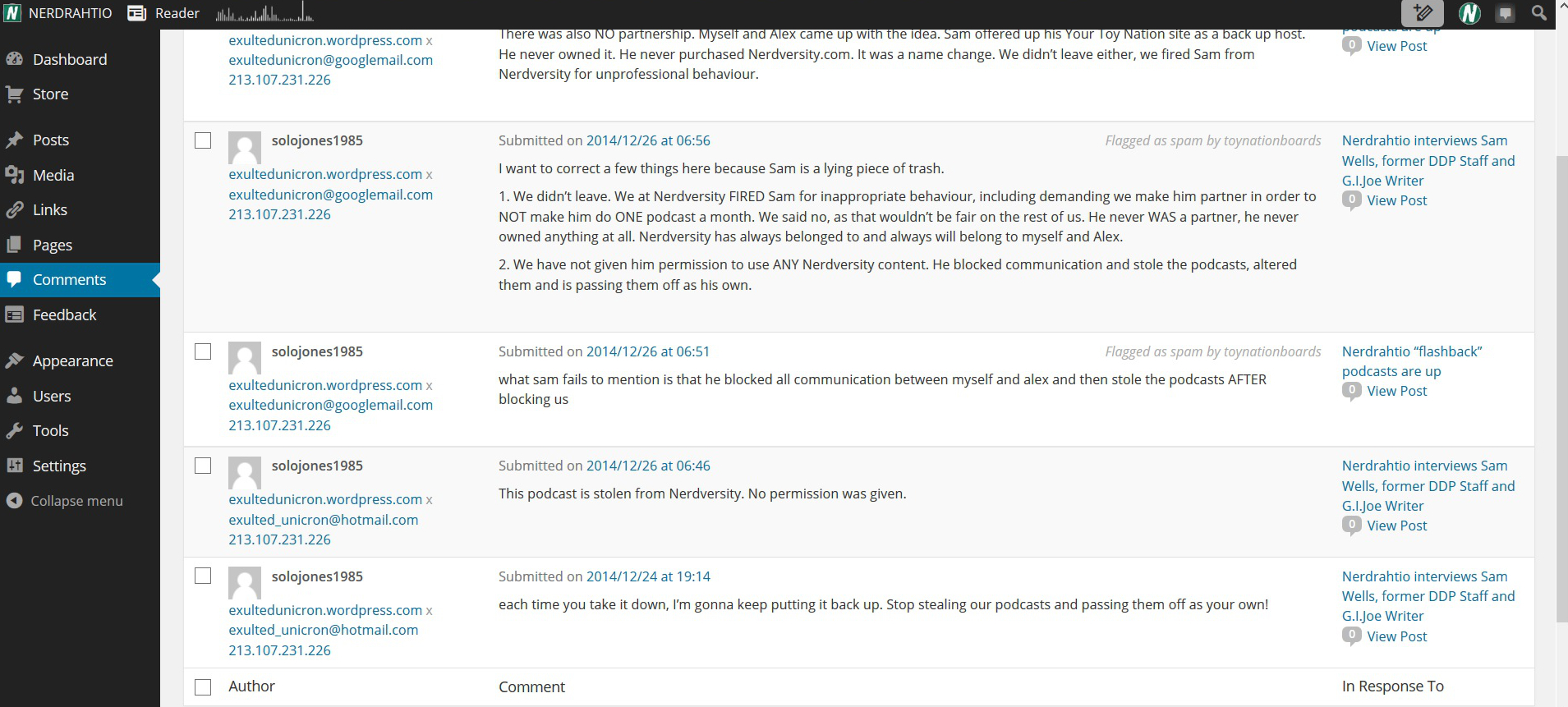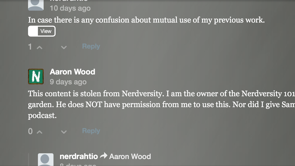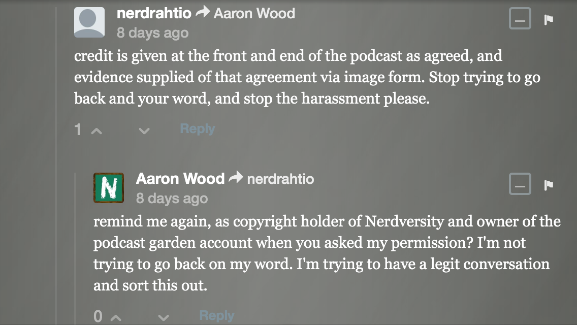 Aaron is also make contradictory claims of being either sole owner, or in partnership with Alex. You can see more below, some of the attacks on the podcast garden page.